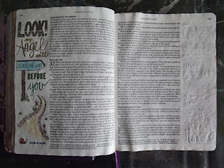 I slip papers in behind the pages I will be working on to protect the rest of the Bible from the spray of the spraygun.