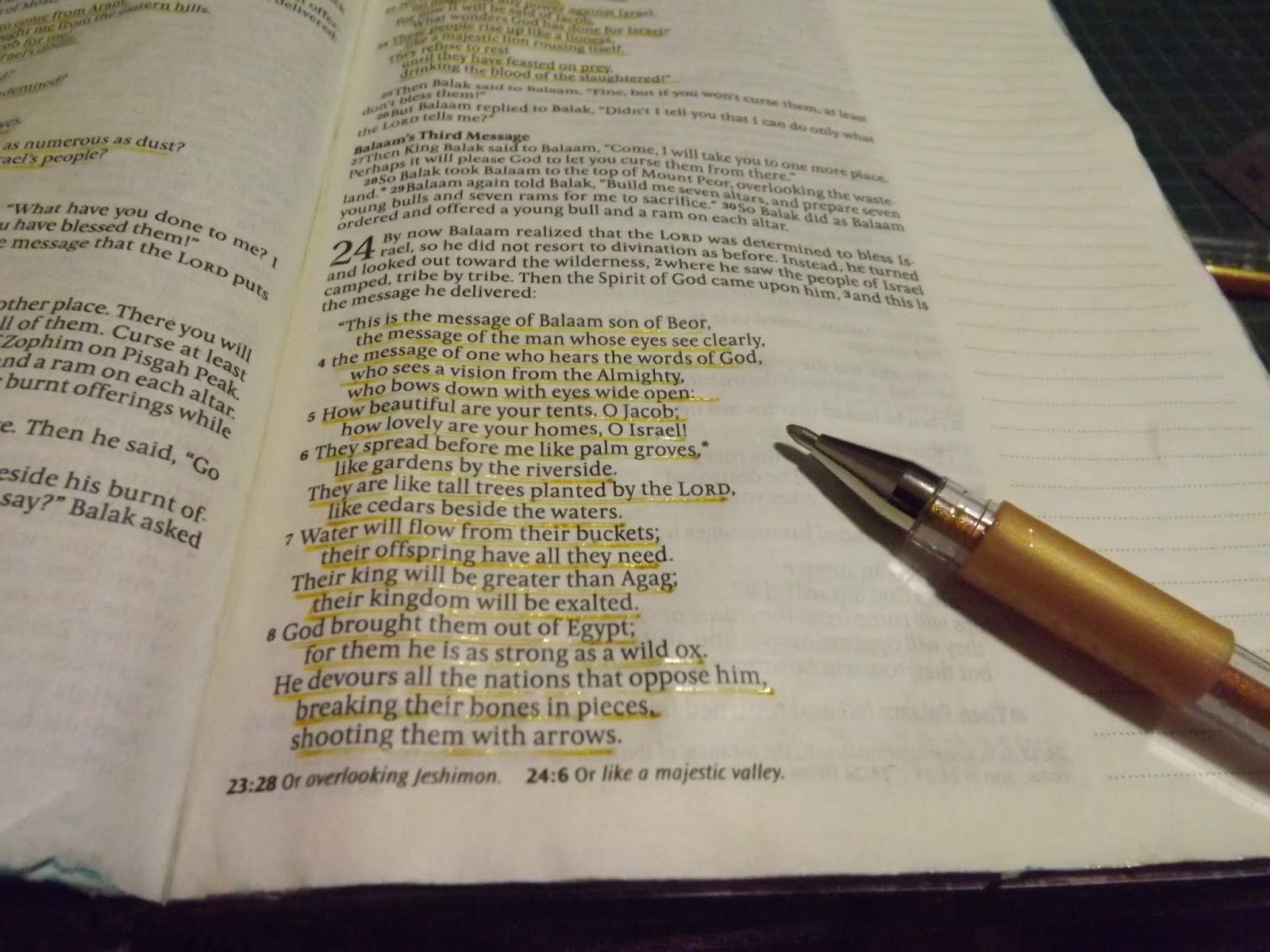 I use a golden Croxley gel pen to underline some key passages. The first can be found in Numbers 23:7-10